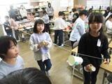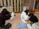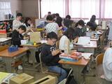 2月20日に「6年生を送る会」が予定されています。5年生の企画と運営で進められます。今日は、そのスタートとして縦割りのグループで6年生へのプレゼント作りをしました。5年生が折り紙を配ったり折り方を教えたりしてリードして進めていました。もう1枚の写真は、5年生の家庭科ミシンの授業の様子です。