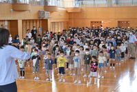 2回目の避難訓練を行いました。今回は,地震が起きた時への対応です。体育館に速やかに避難し,その後全体で避難経路と「お・か・し・も」の約束を確認しました。