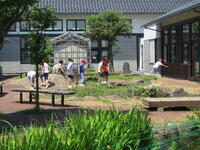 ビオトープのイバラトミヨが巣作り・産卵を終え,稚魚が生まれる時期になりました。これから10月頃にかけて,巣作り・産卵をくり返していきます。休み時間,子どもたちは,ビオトープの生き物を覗きこんでいます。