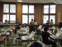 卒業を迎える6年生の同窓会入会式がありました。同窓会長さんからは自分の夢を叶えるには…というお話をいただきました。同じ学び舎を巣立つ仲間になるという気持ちを,改めてもつことができたようです。もう1枚は,1年生音楽の合奏の様子です。