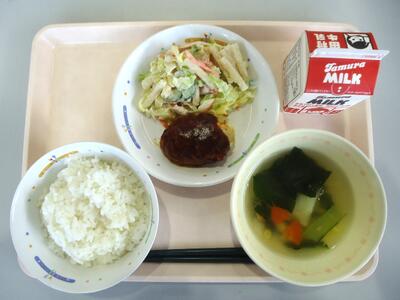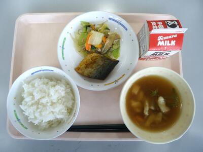 白菜炒め すいとん汁 牛乳