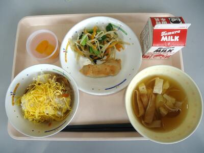 おひたし すまし汁 桃ゼリー 牛乳