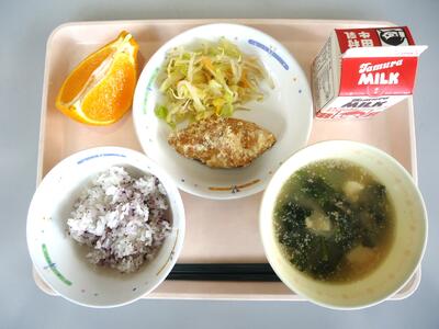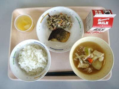 豚汁 りんごゼリー 牛乳