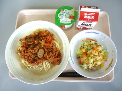 スパゲティミートソース コーンサラダ